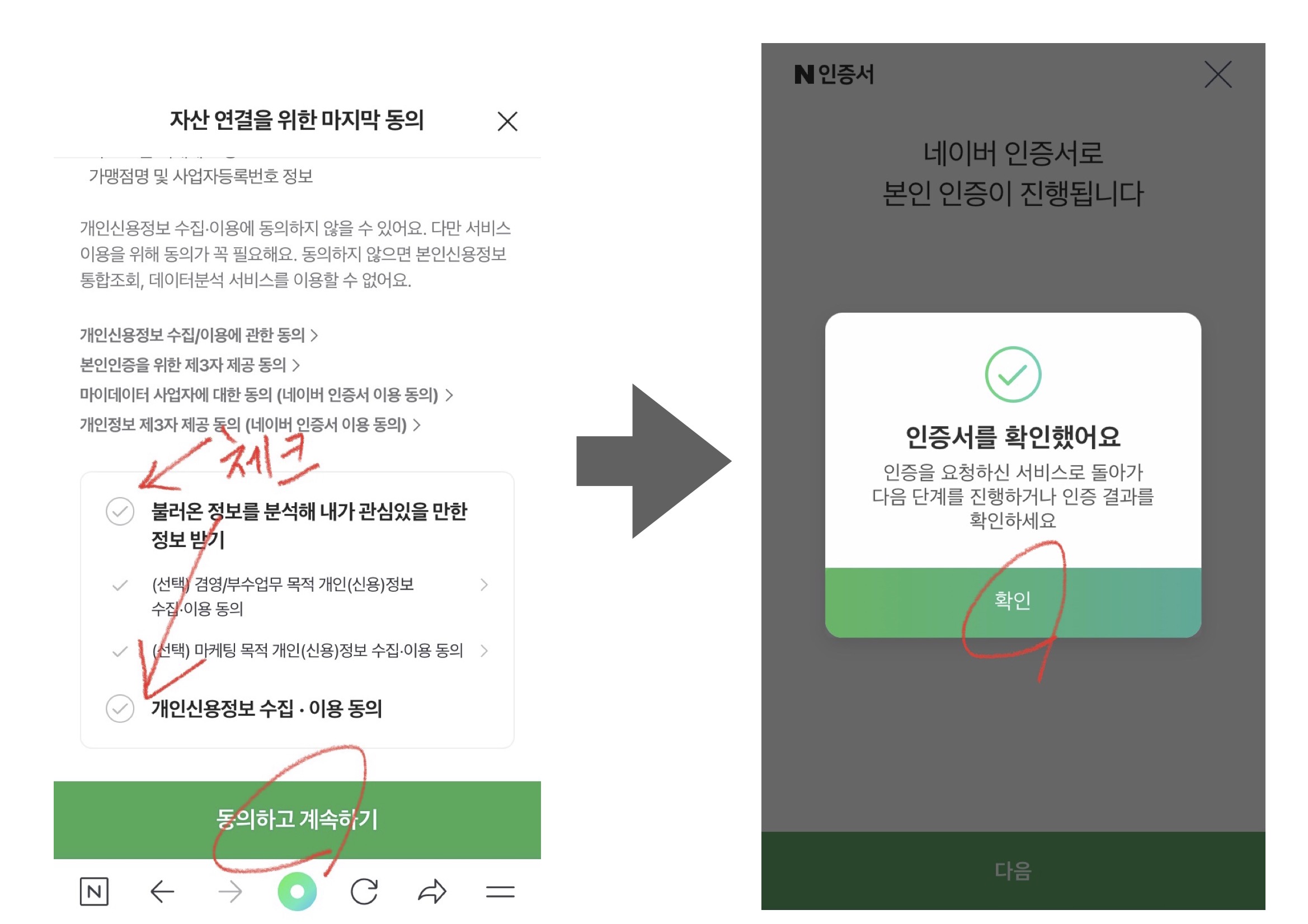 다음 자산을 연결하기 위한 마지막 동의가 진행됩니다. 화면 하단 '아래로 내리기' 클릭합니다.