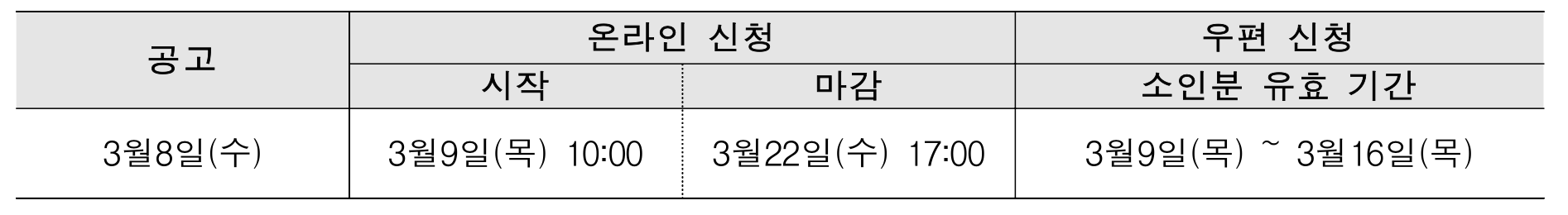 신청기간 : 3월 9일(목) 10:00 ~ 3월 22일(수) 17:00