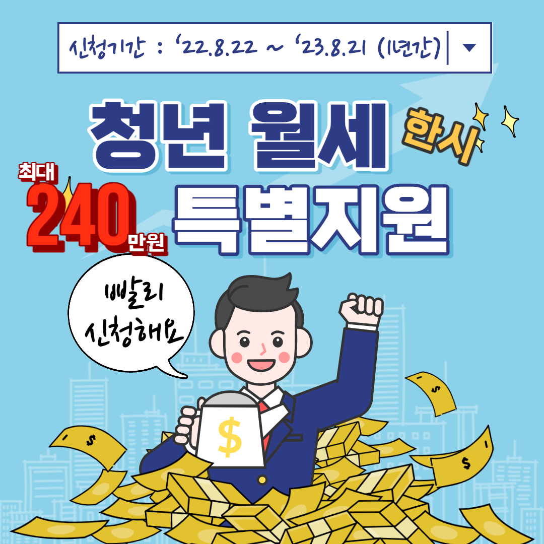 이번 포스팅은 청년들을 위해 한시적 특별지원 사업으로 월세 지원에 대해 알아보겠습니다.